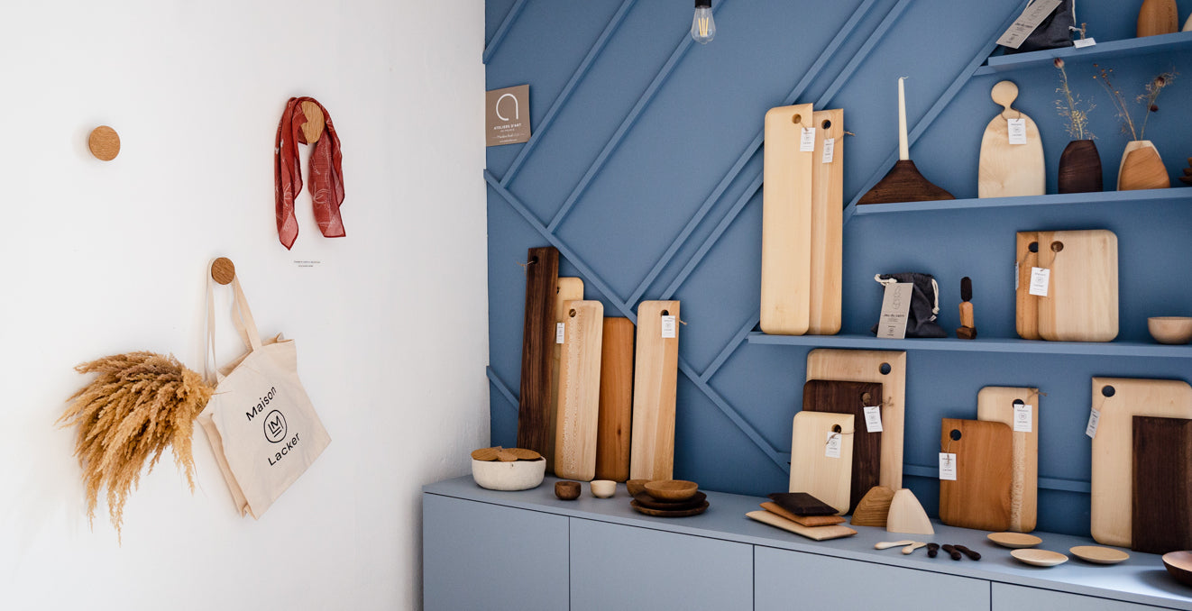 La gamme complète d’objets en bois créés par Maison Lacker. Un moment unique pour partager avec la créatrice, toucher et acquerir un objet unique fait main dans le Jura.