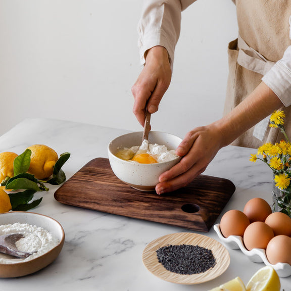 Maison Lacker sélectionne des essences de bois compatibles avec la cuisine et classés dans les bois durs pour recevoir les coups de couteau. Chaque planche à découper est confectionnée artisanalement dans notre atelier du Jura, en Franche-Comté. Par respect pour l’environnement, les nœuds et les fentes sont inclus dans la fabrication, s’ils ne compromettent pas la qualité et la durabilité des planches à découper. Ils sont soigneusement placés pour donner un caractère unique, durable et élégant aux objets en bois.