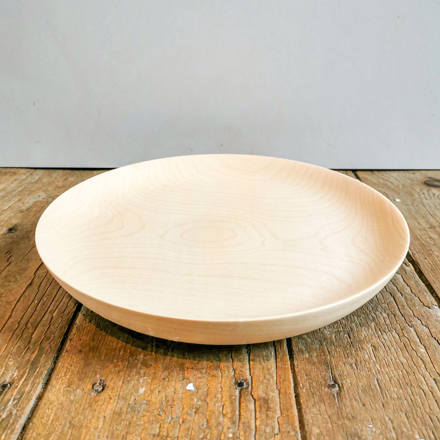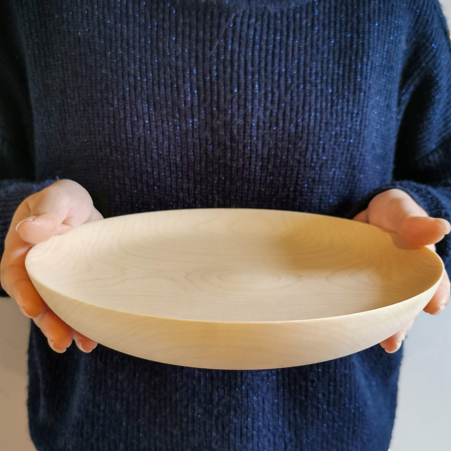 Maison Lacker sélectionne des essences compatibles avec la cuisine. Le bois d'érable de ce plat est scié et séché dans les scieries jurassiennes proches de l'atelier. Le bois est d'origine France et PEFC. Ce plat est tourné à la main dans notre atelier du Jura.