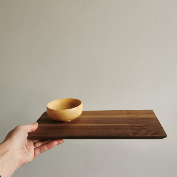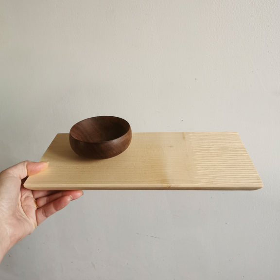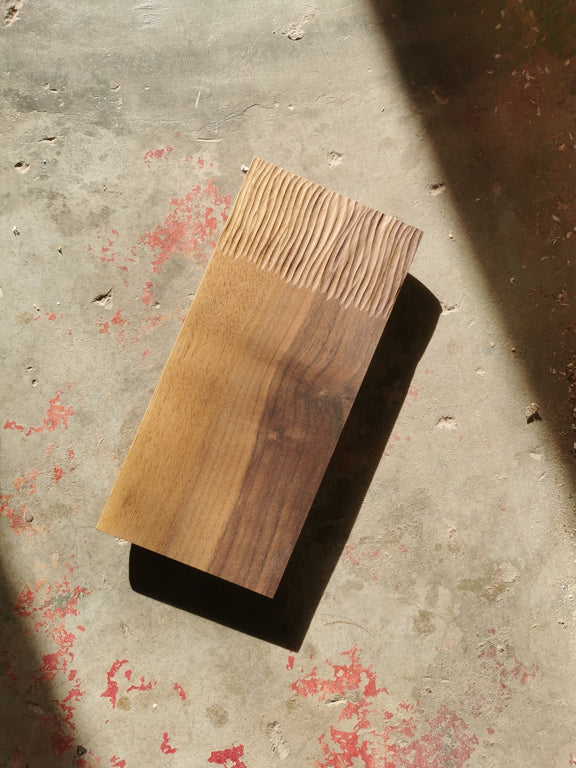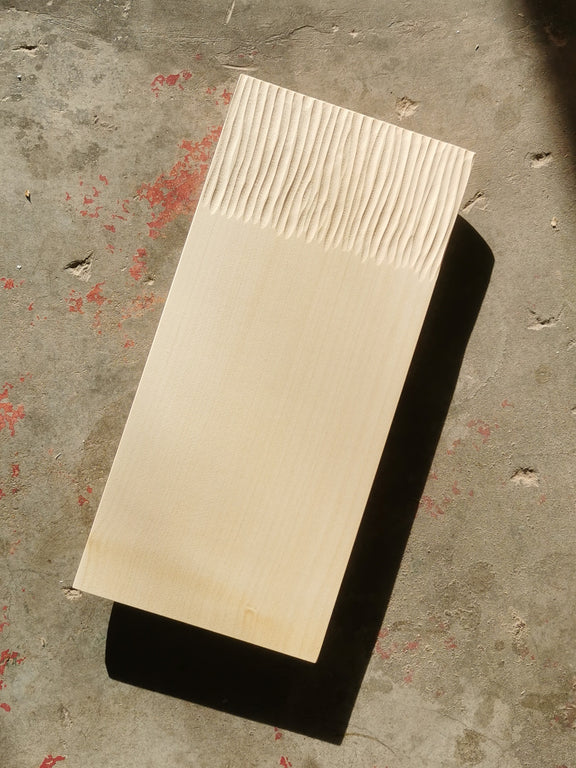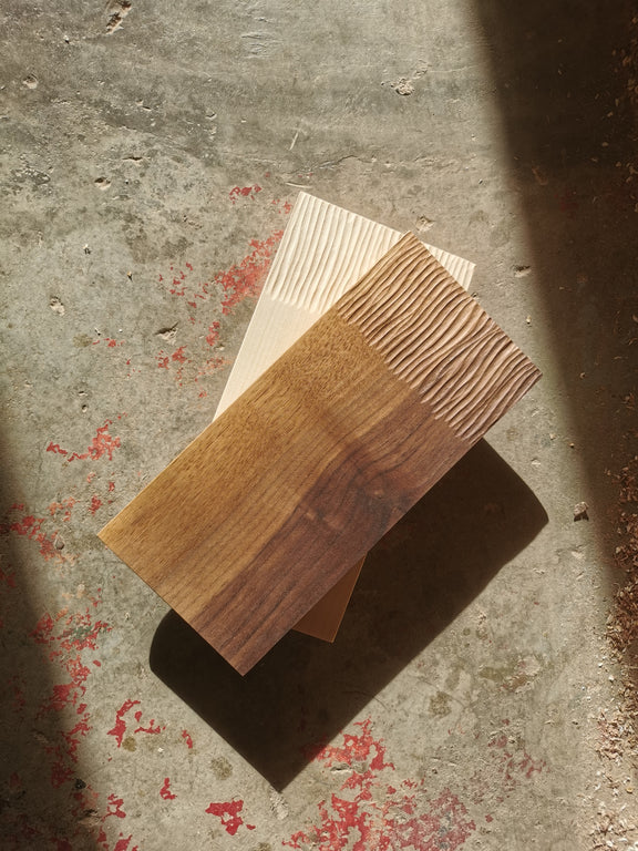 Chaque plateau est façonné artisanalement à l’atelier, dans le Jura. La sculpture est réalisée à la main : elle rend chaque pièce unique (motifs, profondeur, veinage et nuances peuvent varier). Maison Lacker aime laisser le bois s’exprimer — avec ses singularités — pour créer des objets durables, faits pour être gardés longtemps.