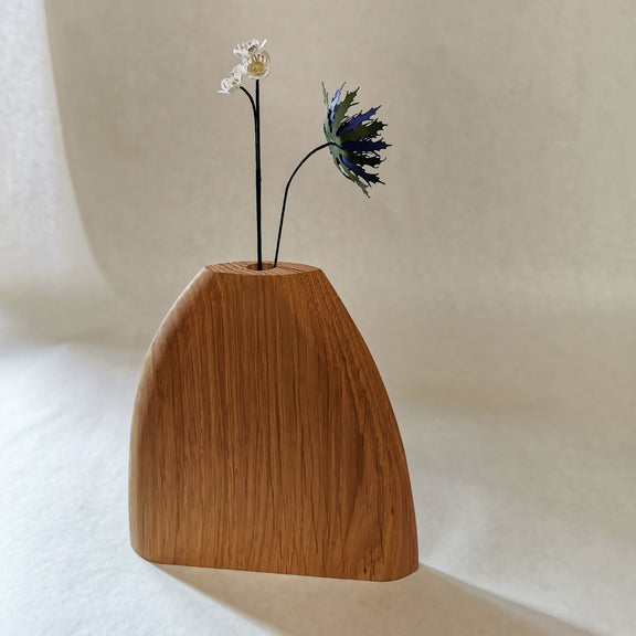 Un soliflore en bois, simple et vivant, pensé pour accueillir une tige, une fleur du jardin, quelques brins séchés… ou rester tel quel, comme un petit objet décoratif. Sa forme minimaliste met le végétal en valeur, tout en apportant de la chaleur à une table, une étagère ou un rebord de fenêtre.