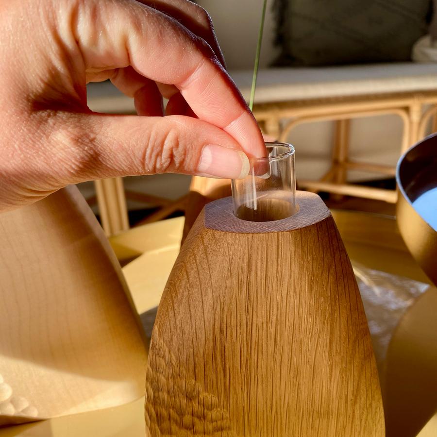 Maison Lacker sélectionne des essences de bois locales, chaque soliflore est réalisé à la main. Sensible à l'écologie, chaque vase en bois est fabriqué à partir de chutes de bois de l'atelier. En effet, une fois les grands objets fabriqués, nous utilisons les morceaux restant pour faire de plus petits objets en bois. Chaque soliflore est donc unique et éco conçu.